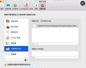 2.选择忽略列表,选择“大型和旧文件”,点击“+”。